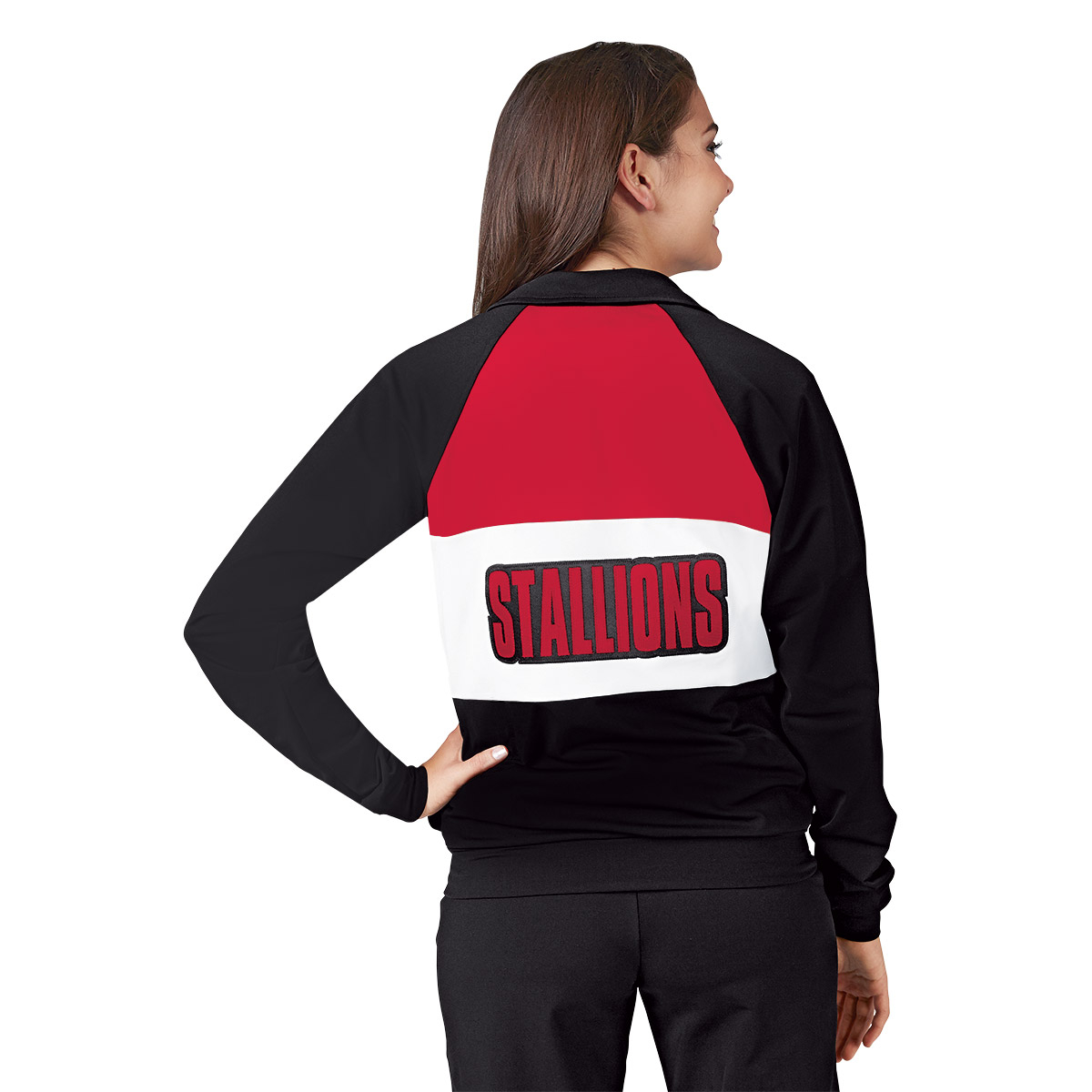 Made-to-order polyester warm-up. Package includes polyester full-zip track jacket with side pockets 7352S and polyester boot cut pants 7208. Lettering priced seperately. Made-to-order items are not returnable or exchangeable.