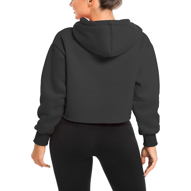 Crop hoodie is long sleeve,hooded neck,drawstring,cropped cut,soft fleece inside,lightweight,relaxed fit.