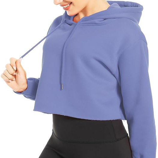 Crop hoodie is long sleeve,hooded neck,drawstring,cropped cut,soft fleece inside,lightweight,relaxed fit.