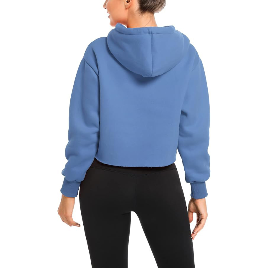 Pullover cropped hoodie is loose fit but cropped silhouette,it can wear alone or layered.